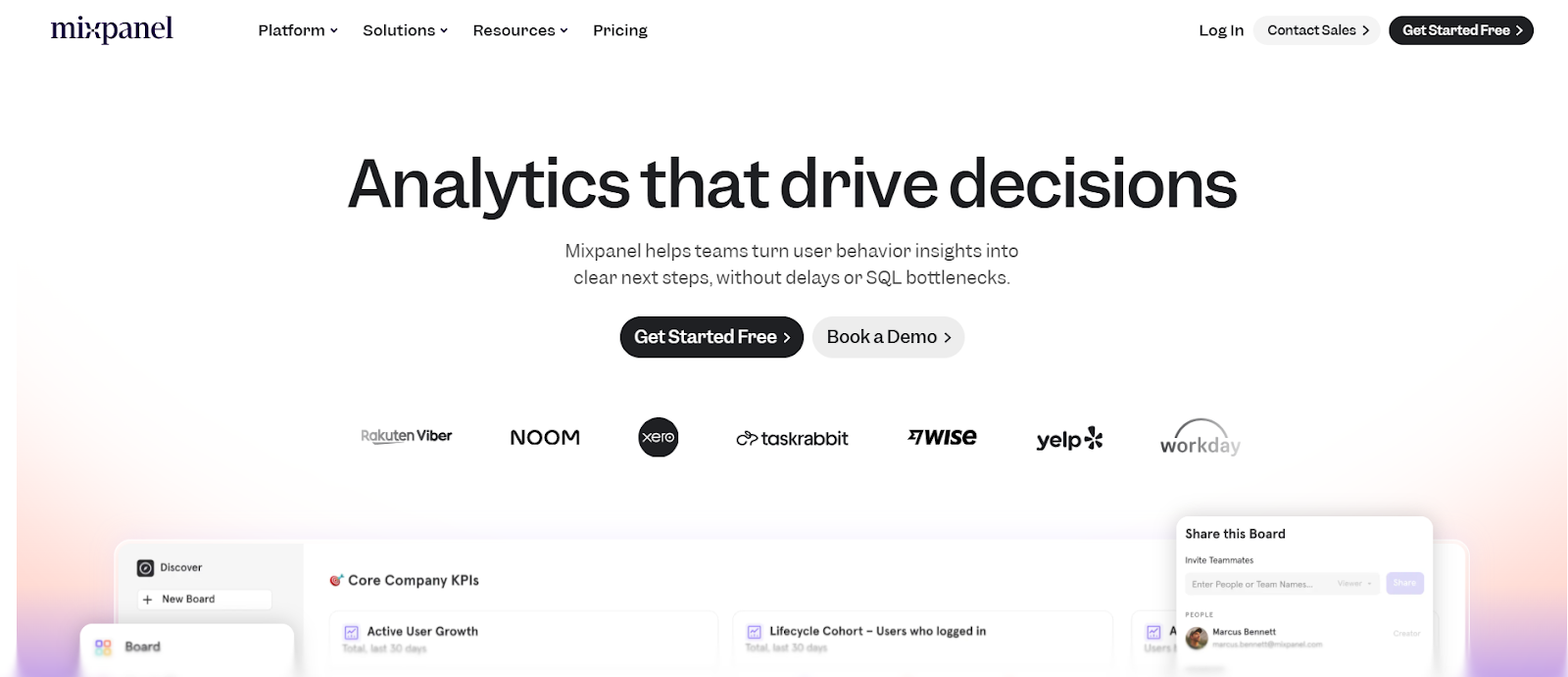 Mixpanel remains a favorite among growth teams for real-time event analytics and retention tracking. Its clean interface and drag-and-drop reports make it easy to measure funnels, cohorts, and user journeys without writing SQL.