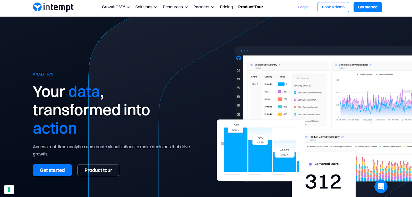 Intempt integrates analytics and revenue attribution into every layer of its GrowthOS. This means funnels, cohorts, session analysis, and predictive insights are not just charts; they directly influence journeys, audiences, and recommendation logic. If funnel drop-offs spike or a specific segment shows declining purchase intent, the AI co-marketer inside Intempt adapts the experience automatically. Every metric becomes actionable.