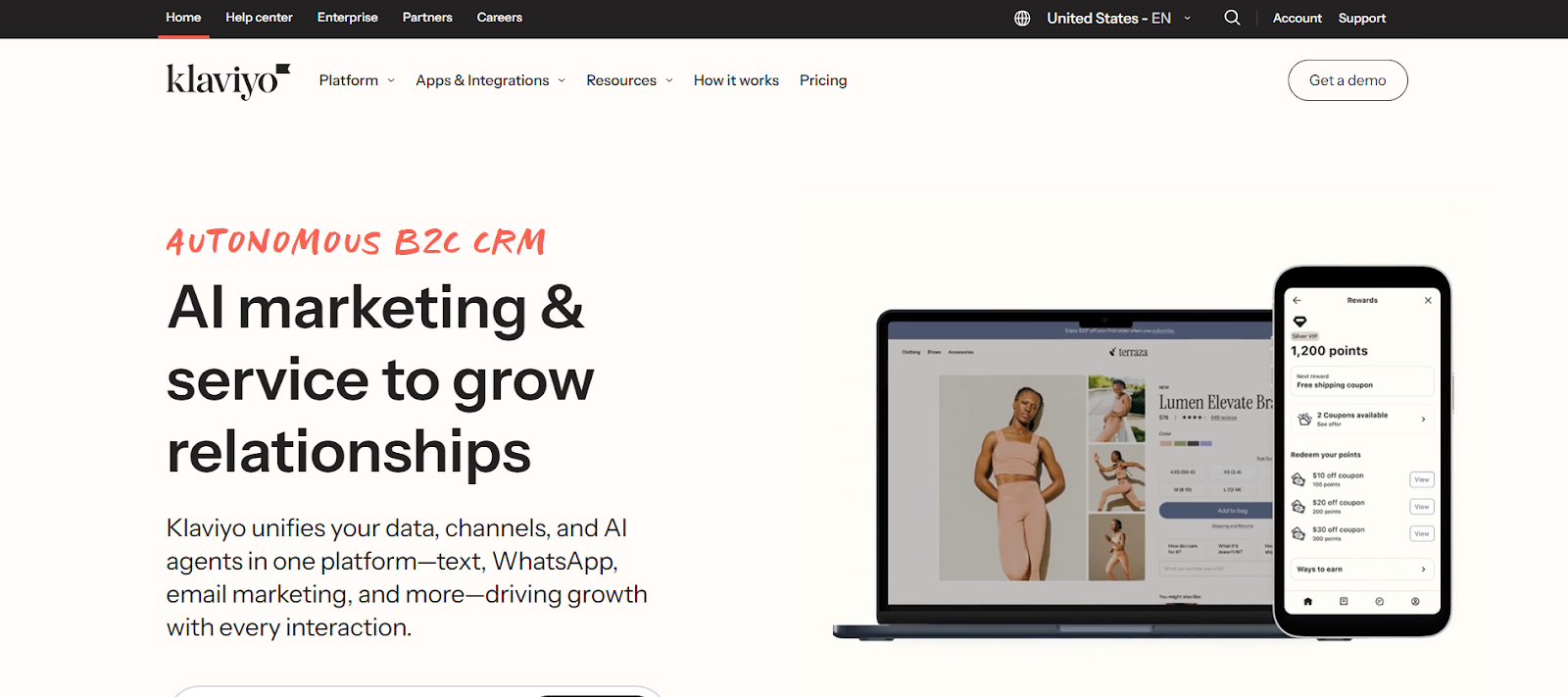 You’re running an e-commerce-focused brand, and the majority of your engagement happens through messaging. Klaviyo shines brightest when your growth strategy is built around storefront conversions and repeat purchases.
