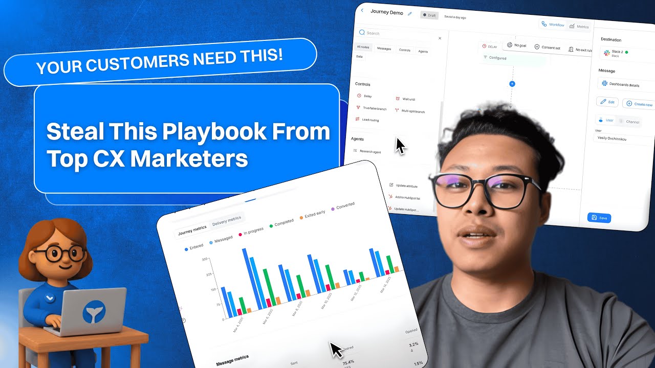 Send email, SMS, push, or internal alerts when users interact with specific experiences.